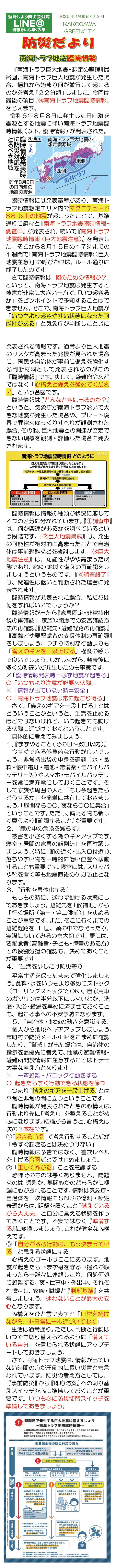 | 306号 | 「防災だより」2月号 | 『南海トラフ巨大地震』「想定の整理・⑳南海トラフ地震臨時情報」 | PDF-413 音声読み上げ jpg画像 |